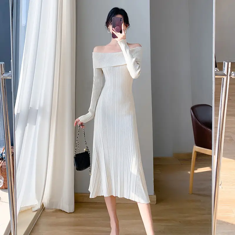 This dress uses a one-word shoulder design, which can show the beautiful shoulder line and collarbone of women. The slim-fitting hip-wrapping style can highlight the curves of women's bodies, and the fishtail skirt adds a sense of dynamics and elegance to the skirt.